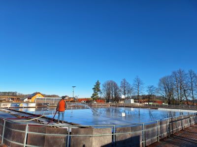 derzeit wird die Eisbahn auf dem Sportplatz in Steina präpariert. Am kommenden Sonnabend, den 13.01.2024 soll es dann soweit sein, dass sie benutzt werden kann.