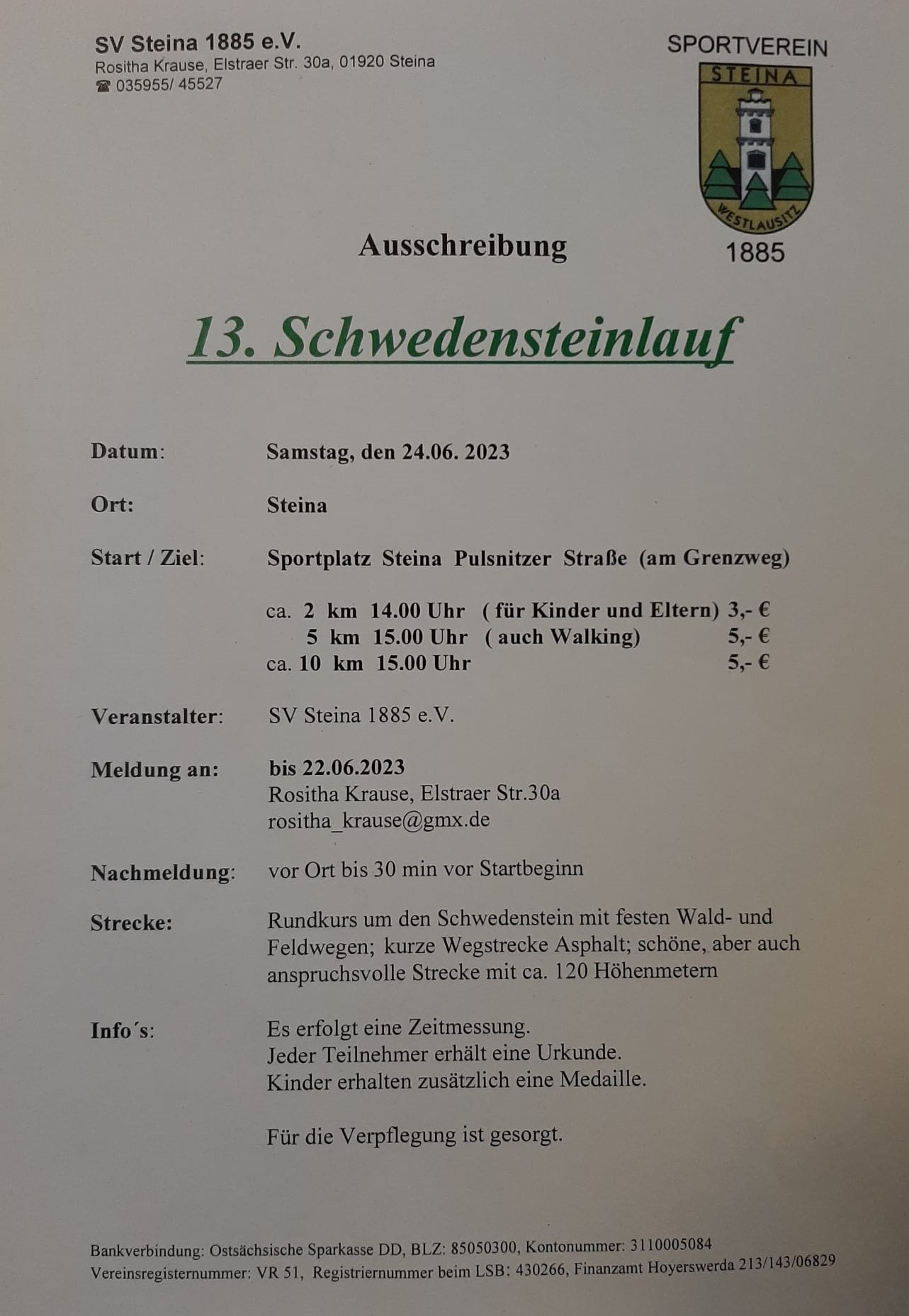 Ausschreibung Schwedensteinlauf, download hier ......