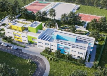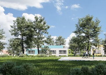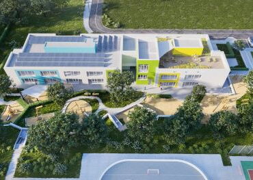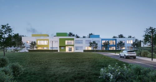 Vorderansicht der geplanten Kita aus der Vogelperspektive