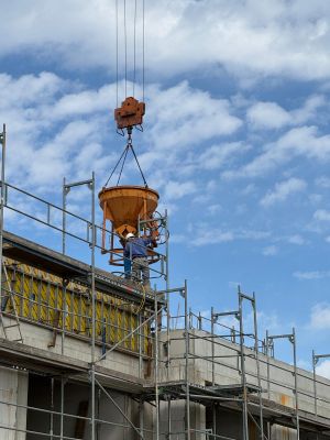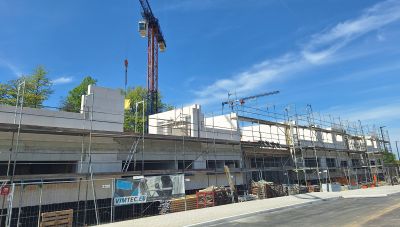 Die Rohbauarbeiten sind termingerecht in vollem Gange.