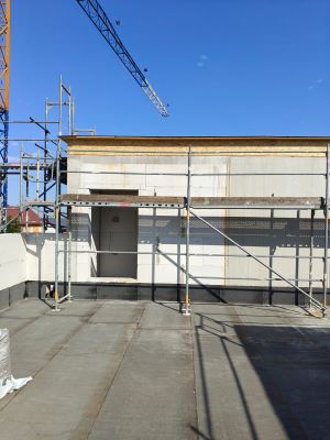 Es erfolgten letzte Arbeiten an der Attika (Aufbau auf Dach). Somit ist der Rohbau soweit vollzogen.
