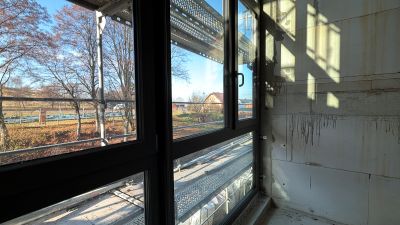 Pünktlich zum Monatsende erfolgt im Rohbau der Fenstereinbau, um die Gebäudehülle zu schließen und den witterungsunabhängigen Innenausbau im Winter zu ermöglichen.