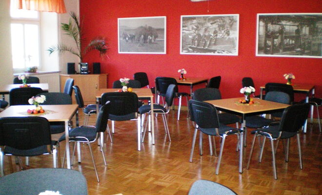 Das Vereinszimmer verfügt über Verdunklungsrollos und eine Leinwand. Bei Bedarf können Sie sich einen Beamer und eine Flipcart ausleihen. Eine kleine Musikanlage ist vorhanden.