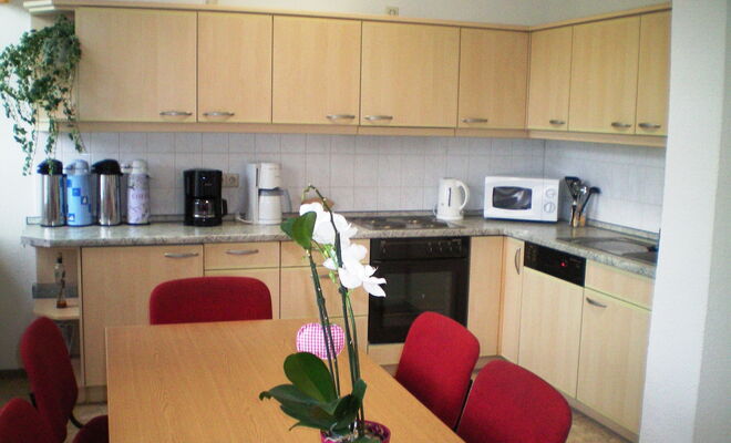 Die Küche ist mit einem Geschirrspüler, Koch- und Backgelegenheit, Kühlschrank, Kaffeemaschinen, Allesschneider, Wasserkocher, Mikrowelle, Gläsern, Geschirr und Besteck in ausreichender Zahl und Tischwäsche ausgestattet.Parkmöglichkeiten befinden sich in ausreichender Zahl unmittelbar am Gebäude.